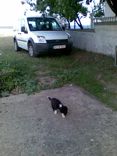 Aamupäivällä oli mummon ja vaarin hämmästys suuri, kun talossamme oli pieni koira. Pentu ei halunnut tulla pois vadista. Kun pennulle toin muussattua perunaa ja lihaa, olikin vadista päästävä pian syömään. Aamupäivän ohjelmaamme kuului myös pennun kylvettäminen. Pesua varten lämmitin vettä kattilassa. Pestäessä pentu vikisi, mutta kun sitä hieroin lämpöisellä vedellä ja shamppoolla, muuttui vikinä tyytyväiseksi urinaksi. Pesun jälkeen Valkotassu nukkui kuistilla pitkät päiväunet. Seuraavassa osasssa kerron lisää matkastamme ja Valkotassusta. Kumpa tuon koira- ja kissaongelman voisi jotenkin ratkaista näissä etelän maissa.